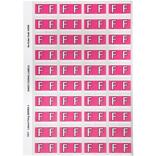 Avery Alphabet Coding Label F Side Tab 25x42mm Pink Pack Of 240