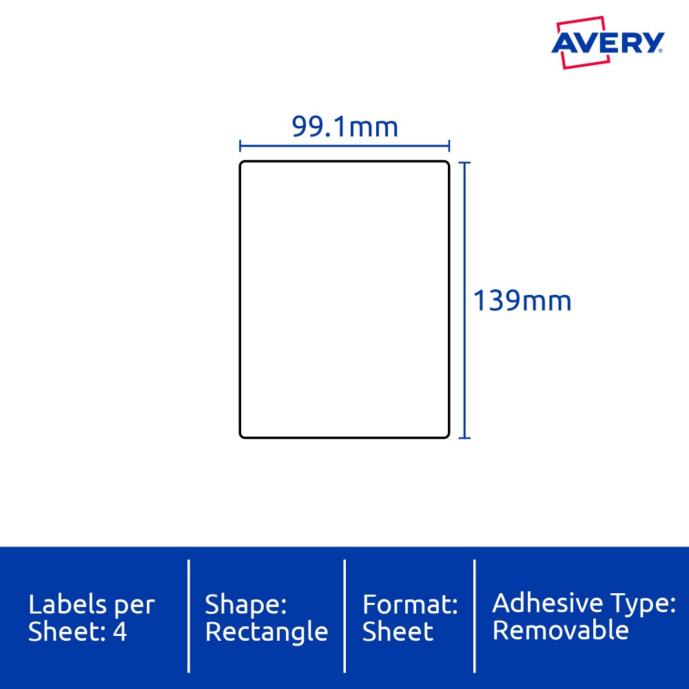 Avery Identification Removable Heavy Duty Laser White L4774 99.1x139mm 4UP 80 Labels