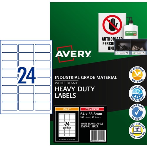 AVERY J4773 DURABLE LABELS IJet H/Duty 24/Sht 64x33.8 Wht PK240