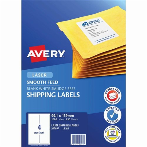 Avery Laser Shipping Labels White L7169 99.1x139mm 4UP 1000 Labels 250 Sheets