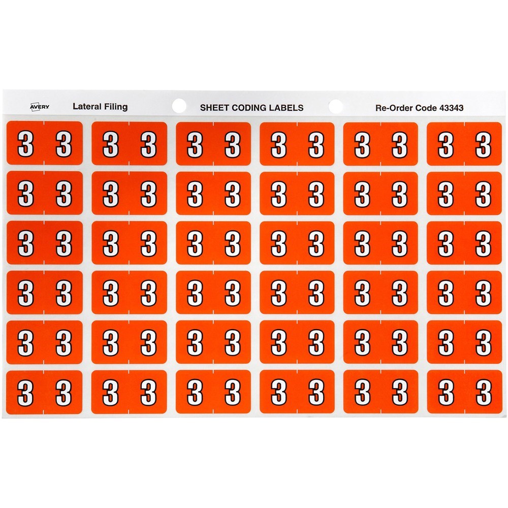Avery Numeric Coding Label 3 Side Tab 25x38mm Dark Orange Pack Of 180