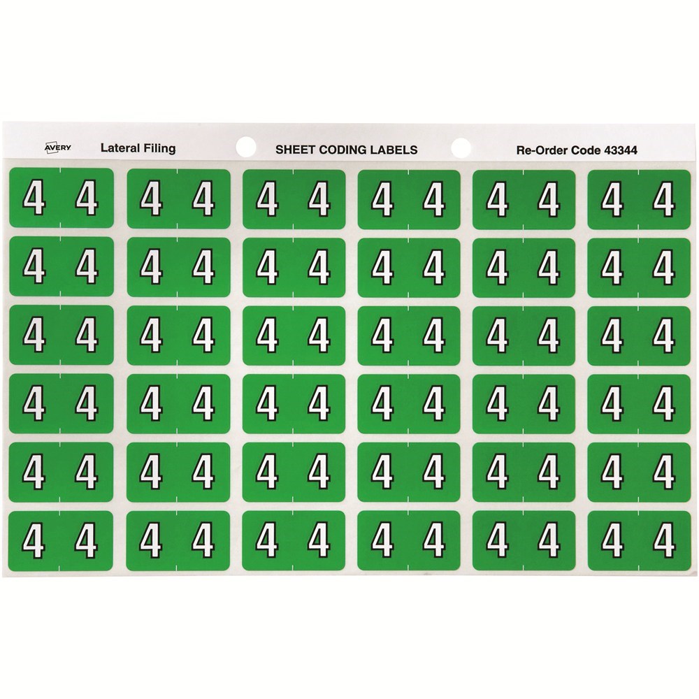 Avery Numeric Coding Label 4 Side Tab 25x38mm Light Green Pack Of 180
