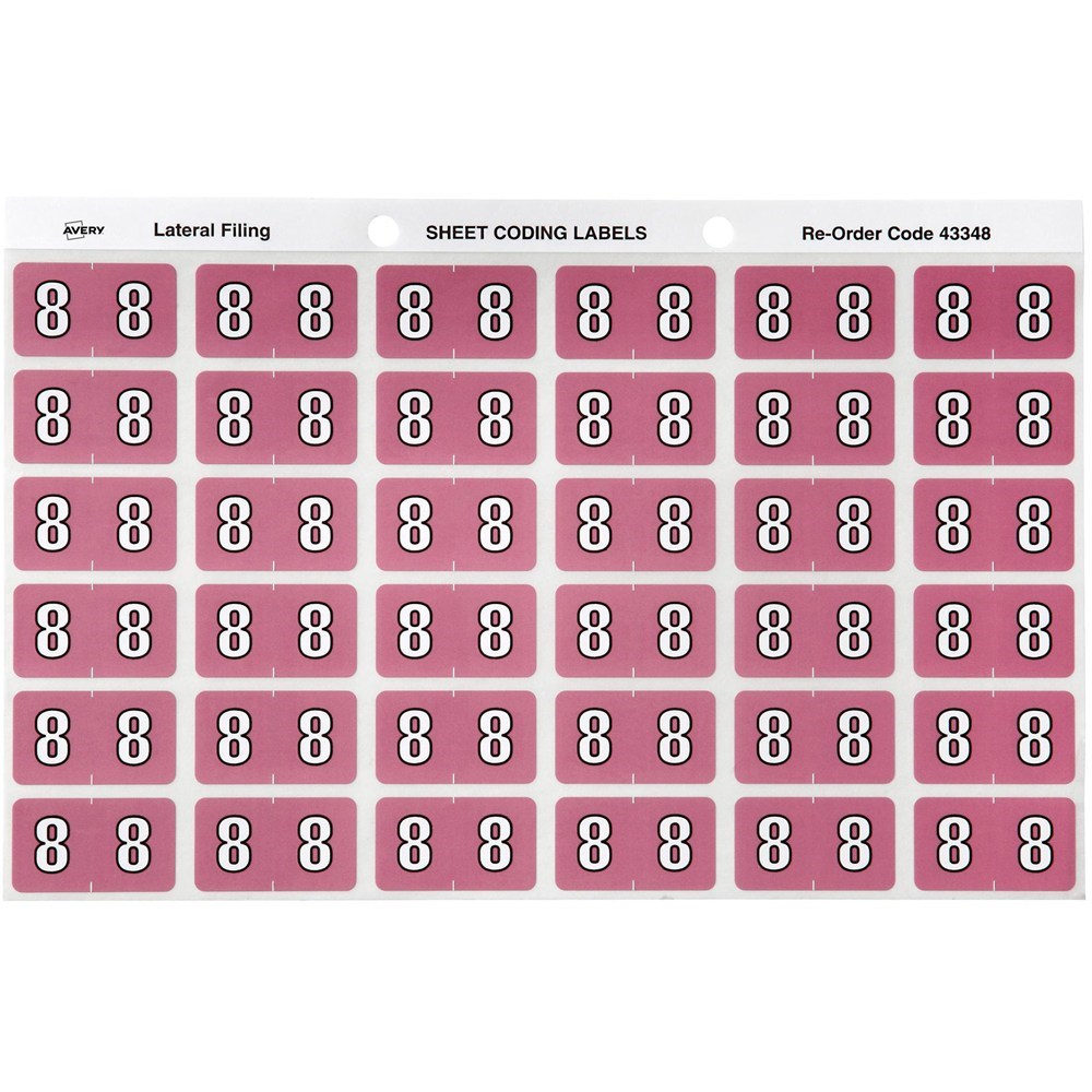 Avery Numeric Coding Label 8 Side Tab 25x38mm Mauve Pack Of 180