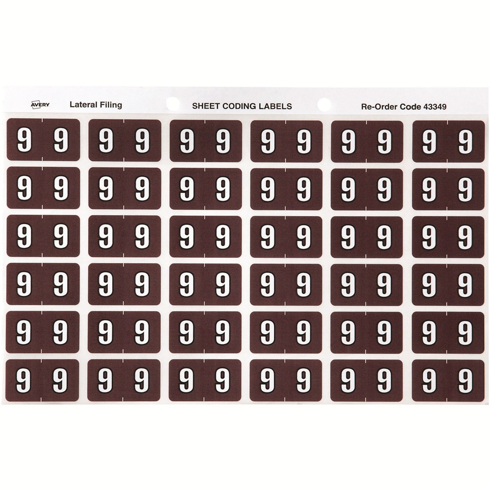 Avery Numeric Coding Label 9 Side Tab 25x38mm Brown Pack Of 180
