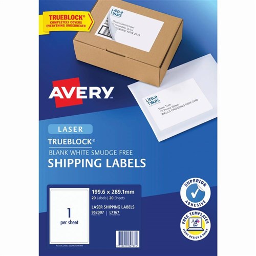 Avery Shipping Laser Labels White L7167 199.6x289.1mm 1UP 20 labels 20 Sheets