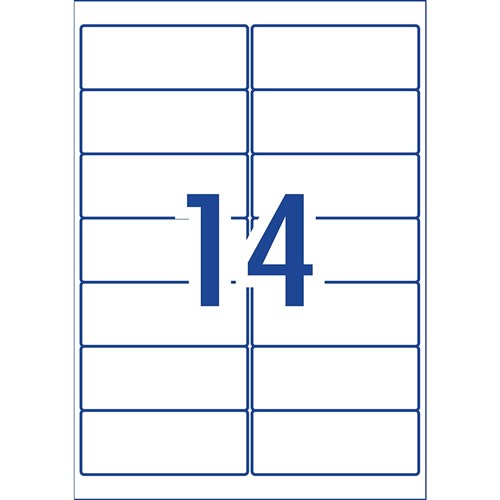 • Size: 99.1x38.1mm 140 labels, 10 sheets. 14 labels per sheet (14UP).