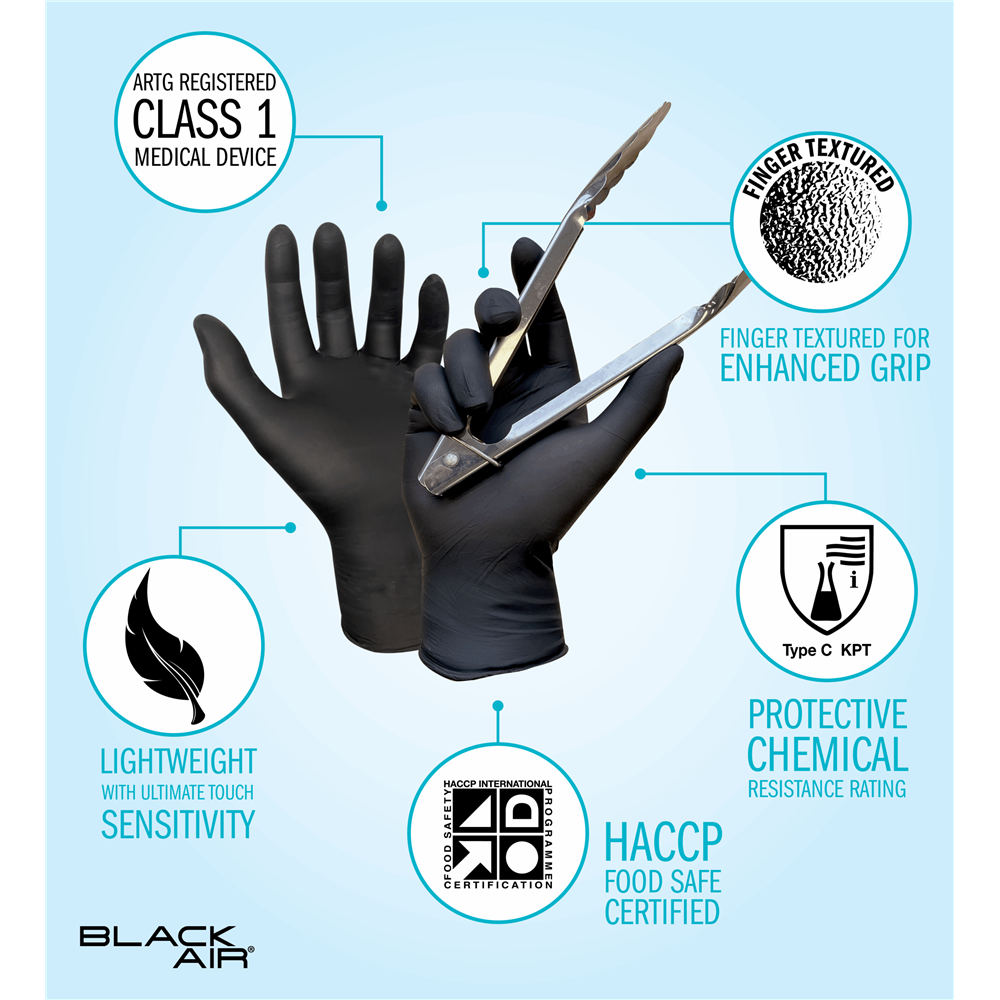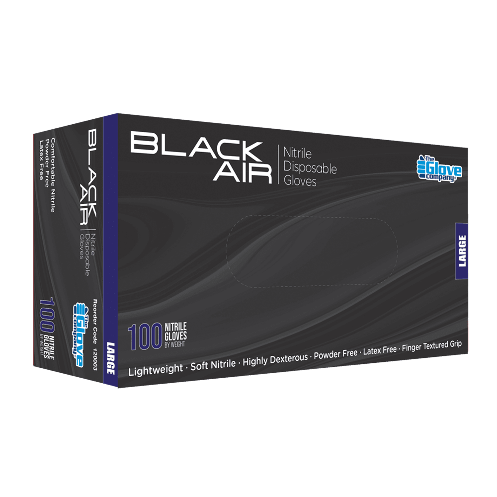 Black Air Nitrile Disposable Gloves XL Extra Large Box of 100