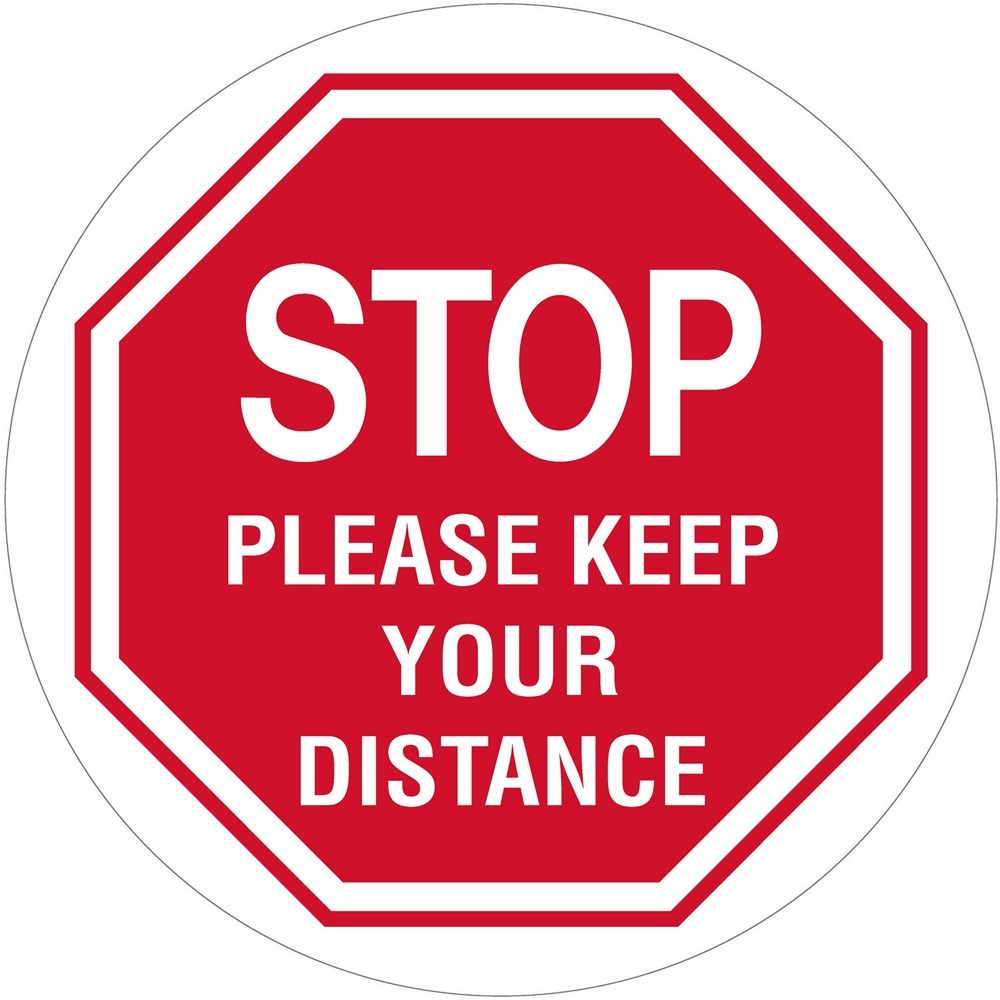 Brady Floor Marker Stop Please Keep Your Distance 440mm Diameter Red/White