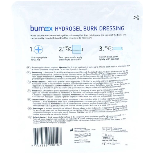 • Burnex burn hydrogel is first aid burn treatment and can be used for minor burns, scalds and sunburn.