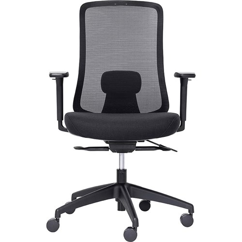• Composition: Breathable mesh back and fabric upholstered seat.