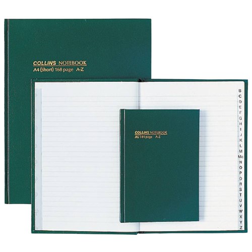 Collins No.5804 Notebook Hard Cover A4 Short Ruled A-Z 168 Page Green