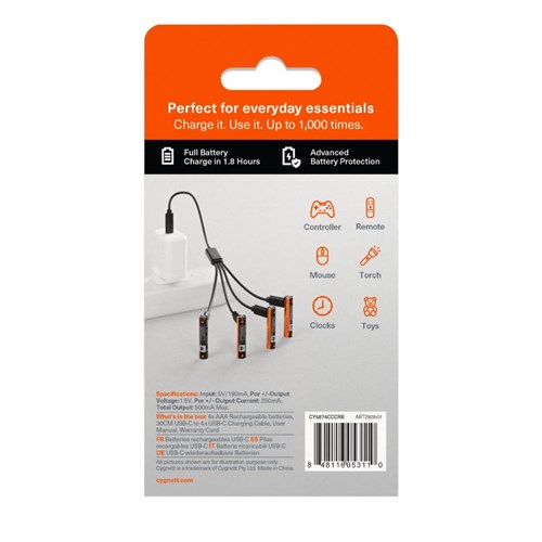 Cygnett USB Rechargeable Battery Size AAA Pack Of 4
