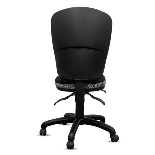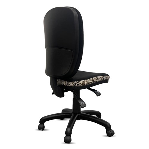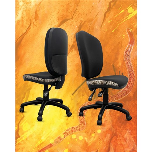 • A unique commercial fabrics designed by Nelly Patterson (Indigenous Artist) combined with K2 Black Fabric to upholster the chair.