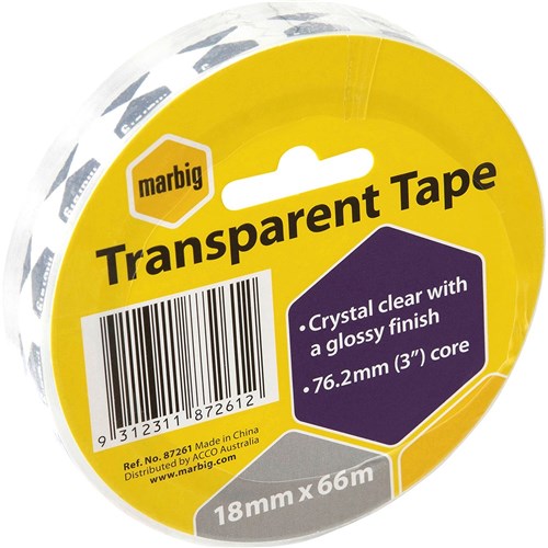 Marbig Office Tape 18mm x 66m 76.2mm Core Clear