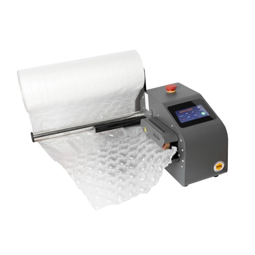 • Compact and efficient air pillow packaging machine suitable for industrial use.