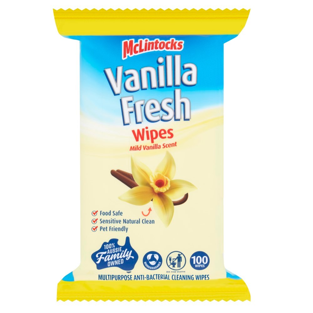 • McLintocks Vanilla Fresh Anti-Bacterial Multi Purpose Cleaning Wipes Pack Of 100