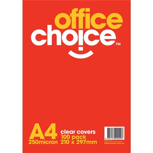 Office Choice Binding Covers A4 250 Micron Clear Pack of 100 Clear