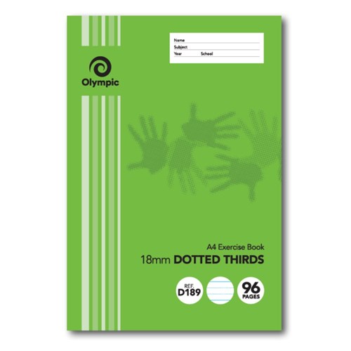 Olympic D189 Exercise Book A4 96 Page 18mm Dotted Thirds With Red Margin