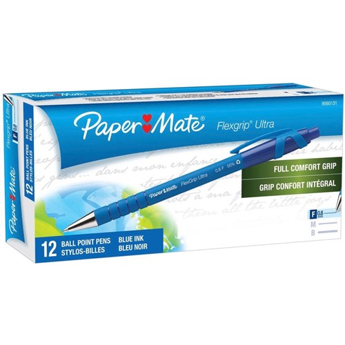 Paper Mate FlexGrip Ultra Ballpoint Pen Retractable Fine 0.8mm Blue DISCON