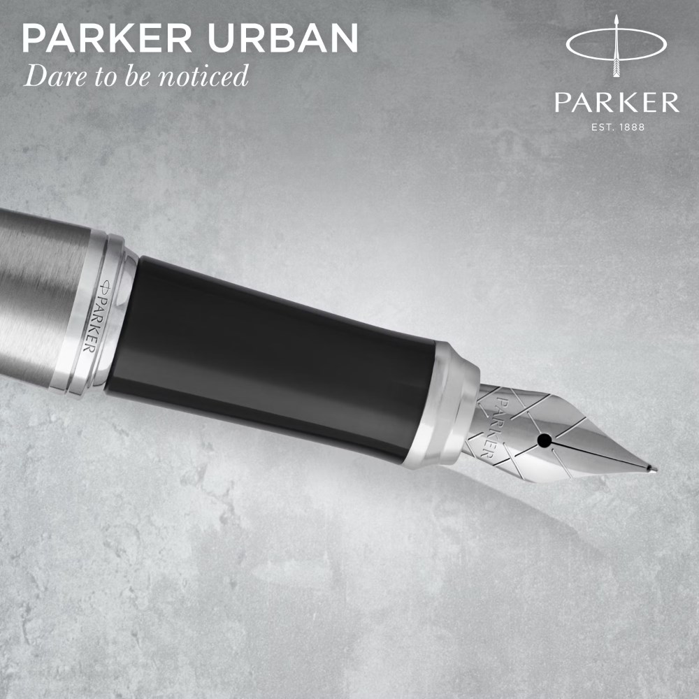Parker Urban Fountain Pen Metro Metallic Chrome Trim Blue Refill