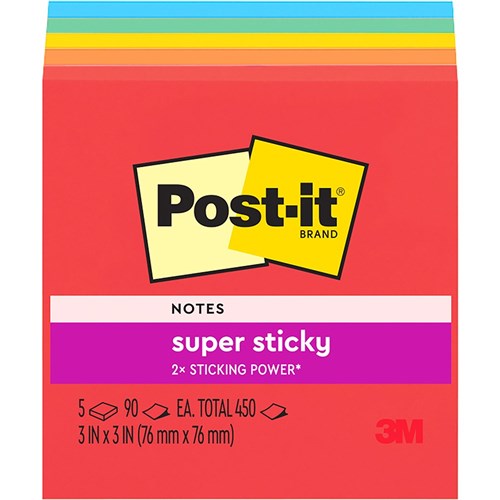 Post-It 654-5SSAN Super Sticky Notes 76mmx76mm Playful Primaries Pack of 5