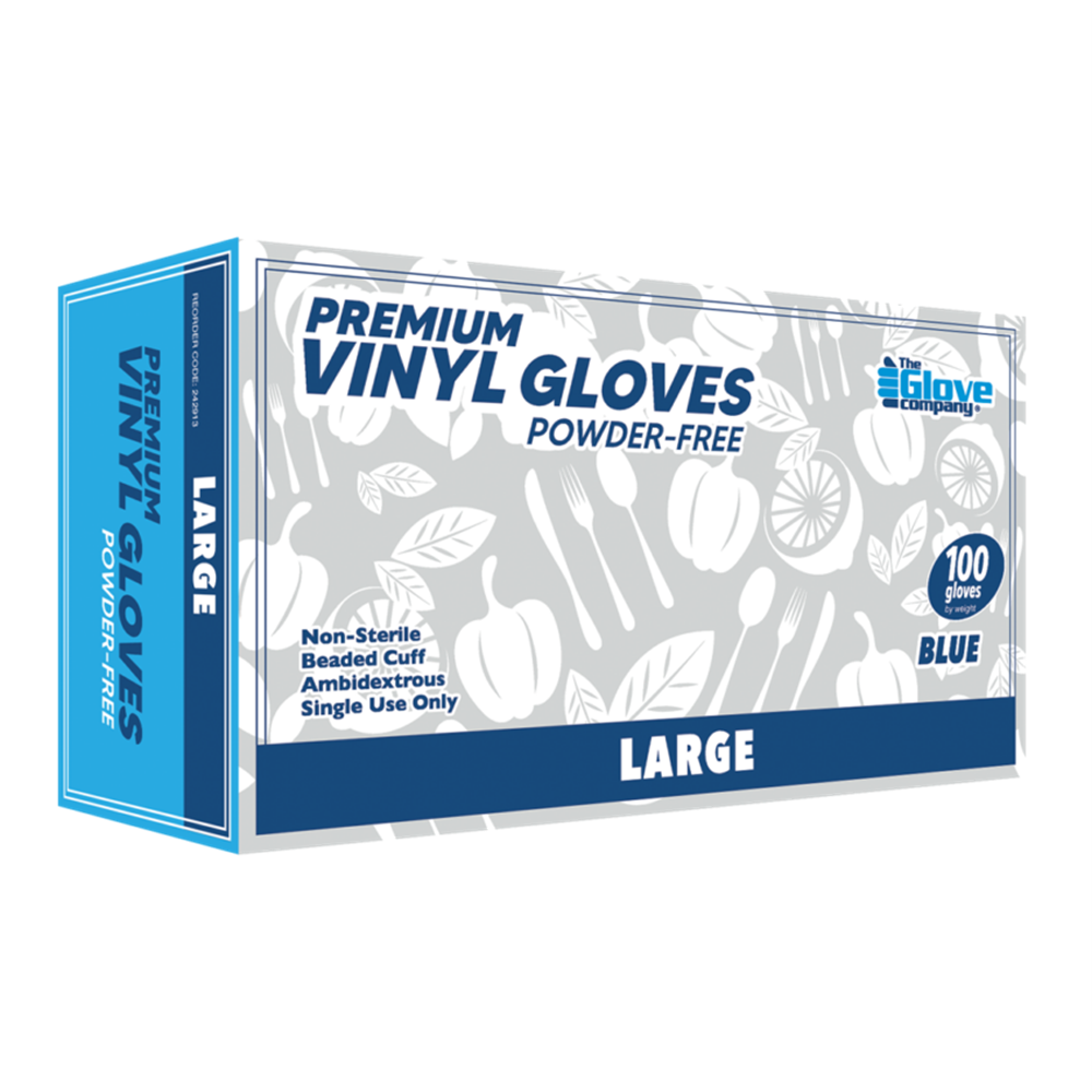 Premium Vinyl Gloves Latex & Powder Free Food Grade Blue Large Box of 100