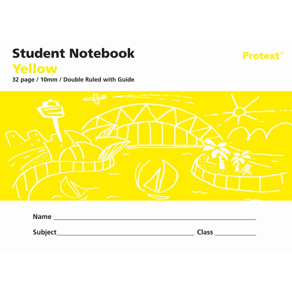 Protext Student Note Book 240 x 175mm Double Ruled 10mm/Guide 32 Page Yellow