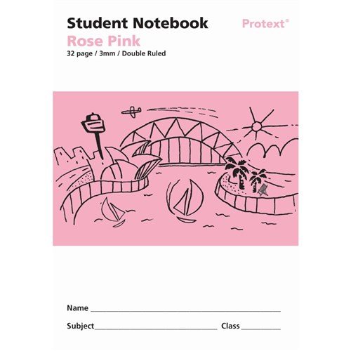 Protext Student Note Book 250 x 175mm Double Ruled 3mm 32 Page Rose Pink
