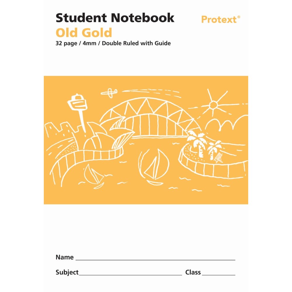 Protext Student Note Book 250 x 175mm Double Ruled 4mm/Guide 32 Page Old Gold