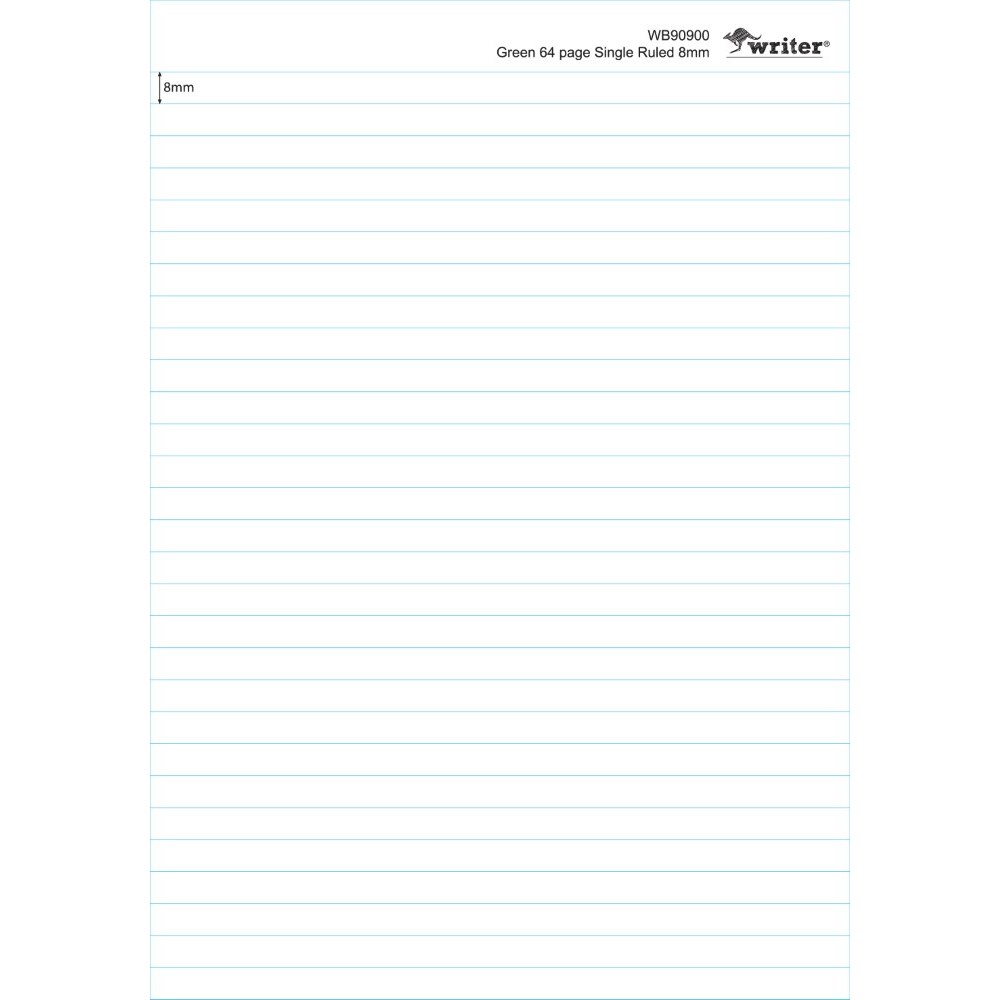 Protext Student Note Book 250 x 175mm Single Ruled 8mm 64 Page Green