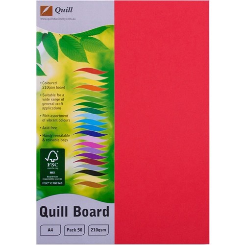 Quill Board A4 210gsm Red Pack of 50