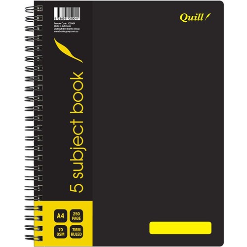Quill Subject Book A4 5 Subject 7mm Ruled 70gsm 250 Page Black