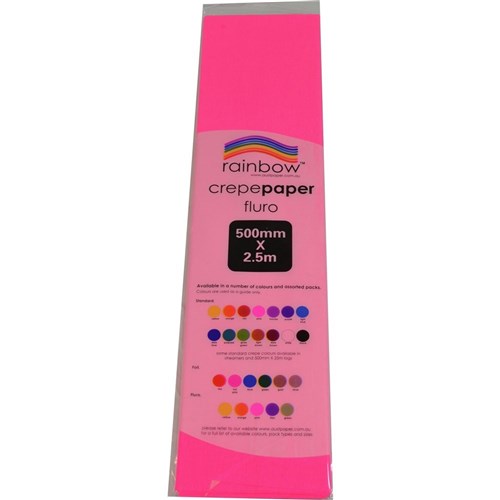 Rainbow Fluro Crepe Paper 500mm x 2.5m Pink