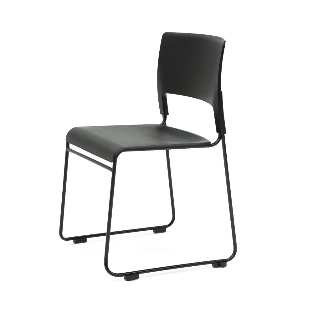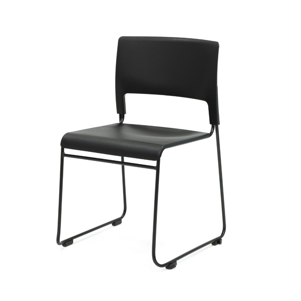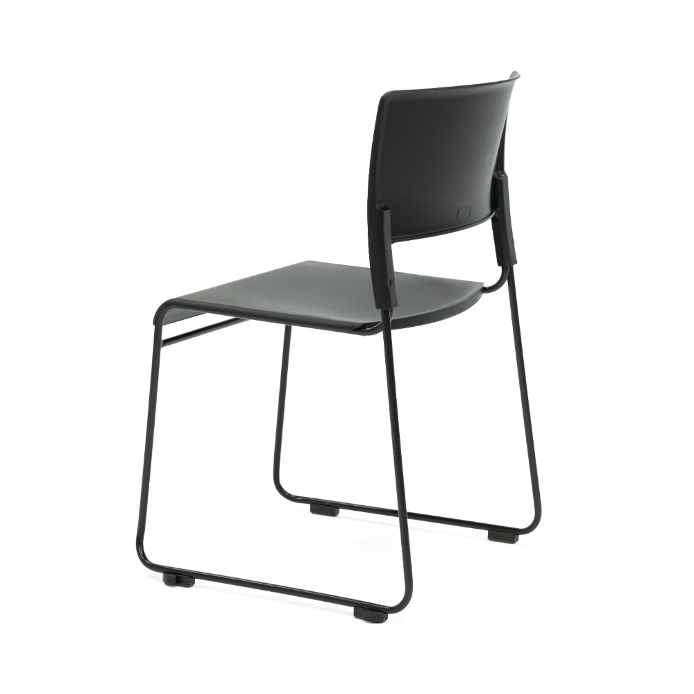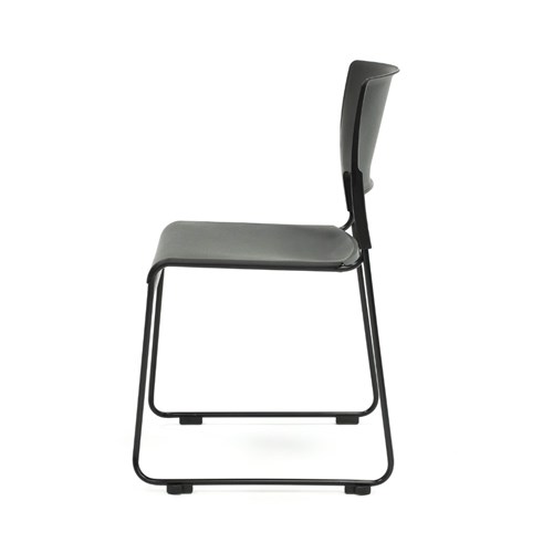 • Composition: Black polypropylene seat and back rest. Robust solid steel sled base frame finished in black powder coat.