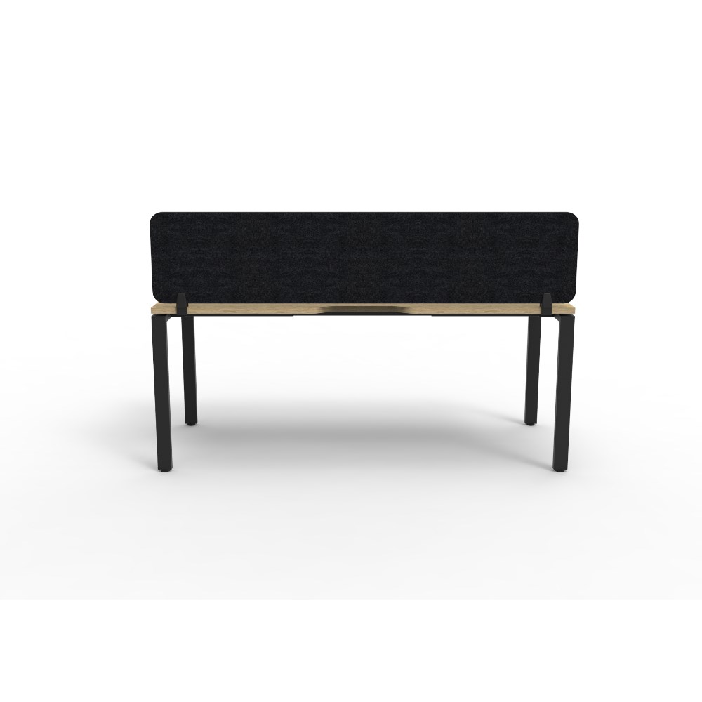 • Natural Oak worksurface with rigid edging and 410mmW x 50mmD scallop cable access. Black Satin powder coat frame. Eco screen.