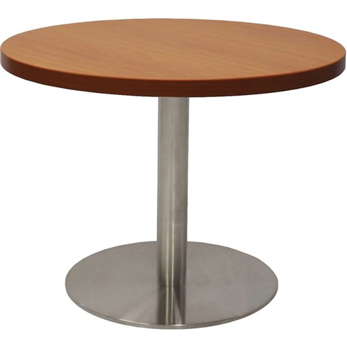 Rapidline Estillo Disc Base Round Coffee Table 600D x 450mmH Cherry Top Silver Base