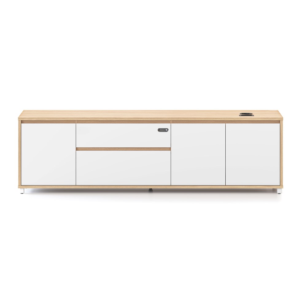 • Executive desk left hand side cabinet for Executive Boost+ and Halo+ Workstations. Natural Oak carcass and Natural White drawer and door fronts.
