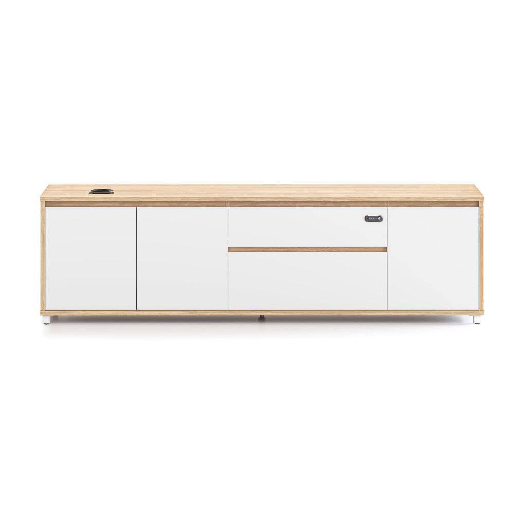 • Executive desk right hand side cabinet for Executive Boost+ and Halo+ Workstations. Natural Oak carcass and Natural White drawer and door fronts.
