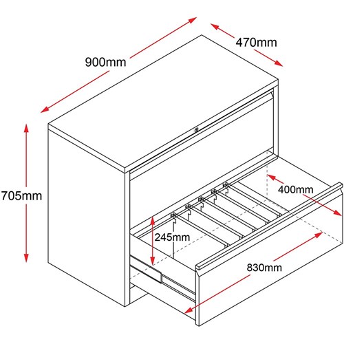 • Rapidline Go Lateral Filing Cabinet 2 Drawer 900W x 473D x 705mmH Black