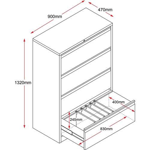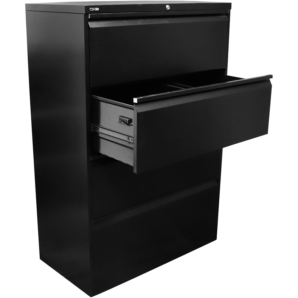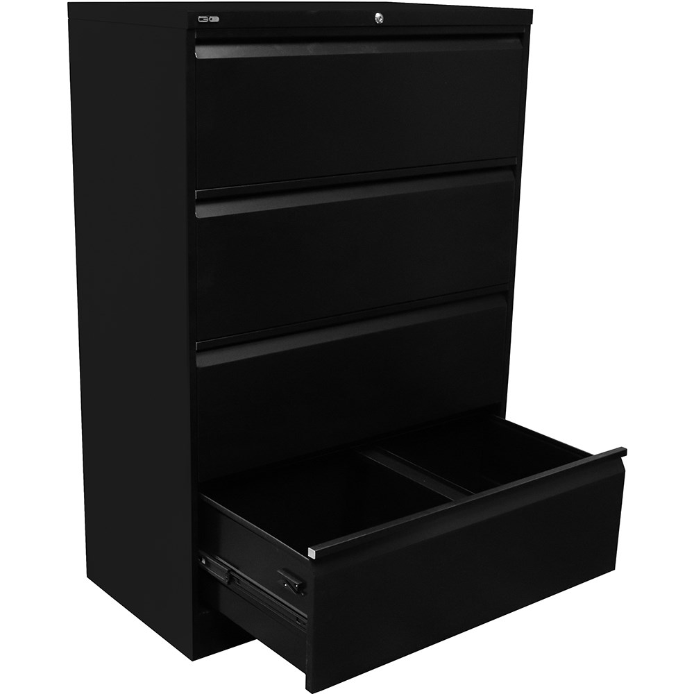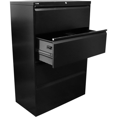 • Rapidline Go Lateral Filing Cabinet 4 Drawer 900W x 473D x 1321mmH Black