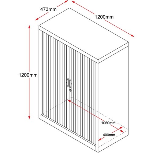 • Rapidline Go Tambour Door Cupboard No Shelves Included 1200W x 473D x 1200mmH Black