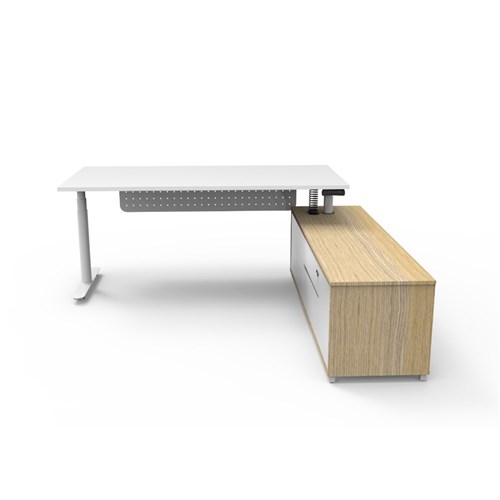 Rapidline Halo+ Executive Desk + RHS Cabinet + Panel 2020W x 2011D x 620-1270mmH White/Wht