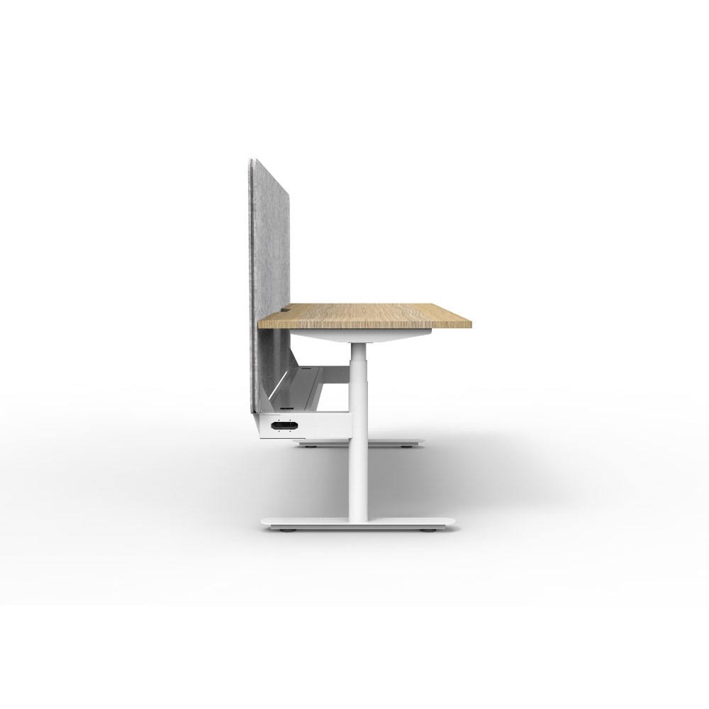 Rapidline Halo+ Single Sided Workstation + Grey Eco Screen +Tray 1500Wx620-1270mmH Oak/Wh