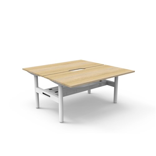 Rapidline Halo Static Back To Back Workstation + Cable Tray 2 Person 1500Wx730mmH Oak/Wht