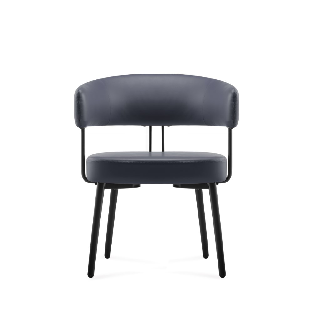 • Robust steel 4 leg frame finished in black powder coat French Navy PU leather seat.