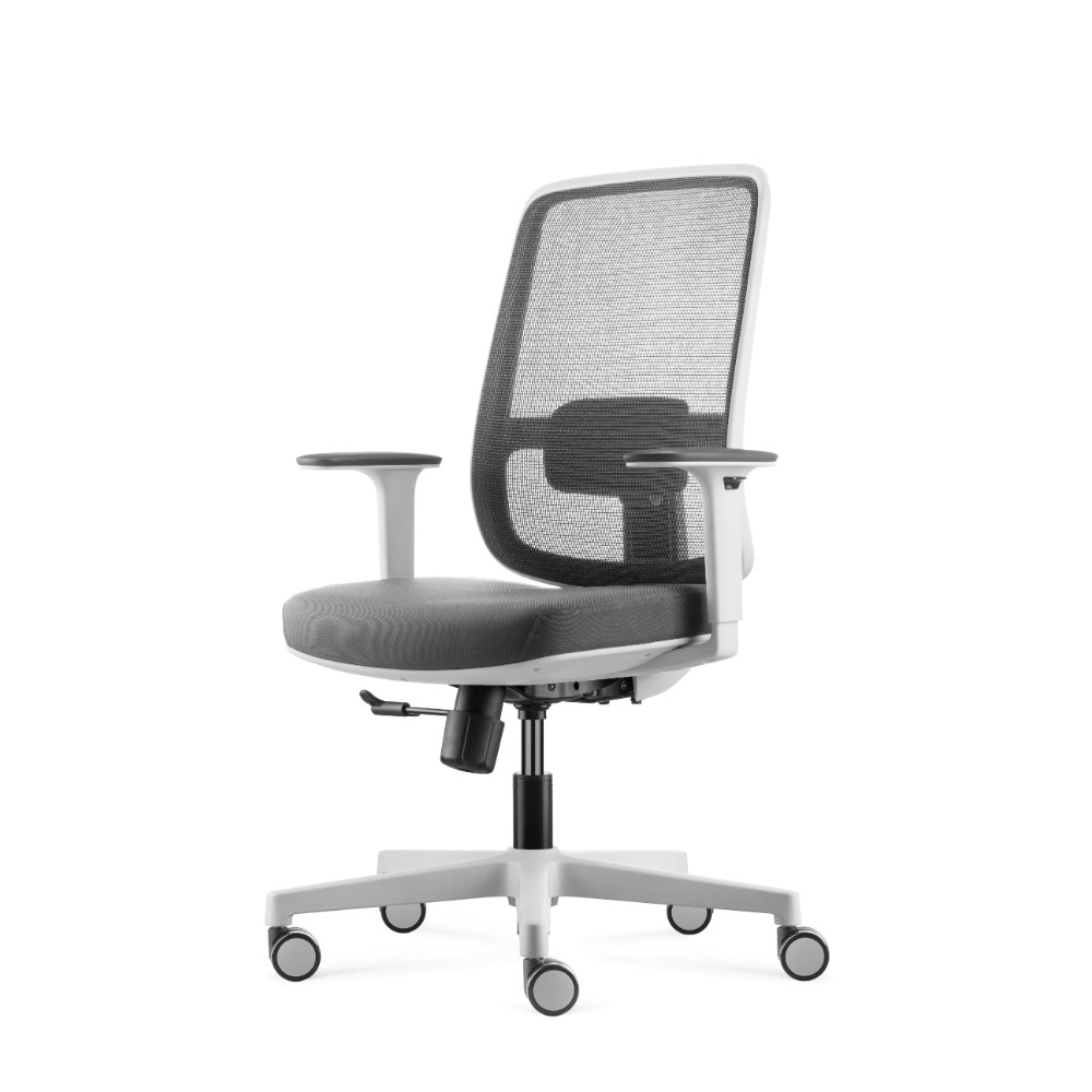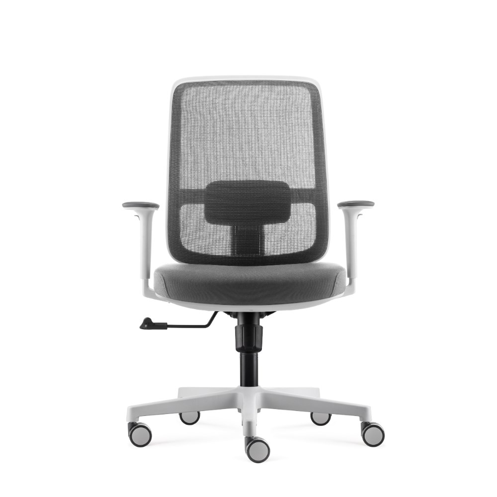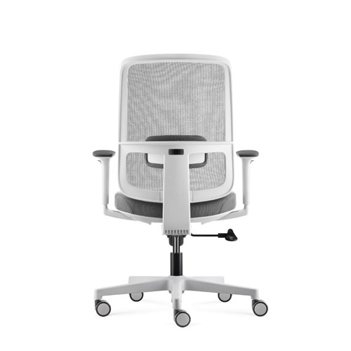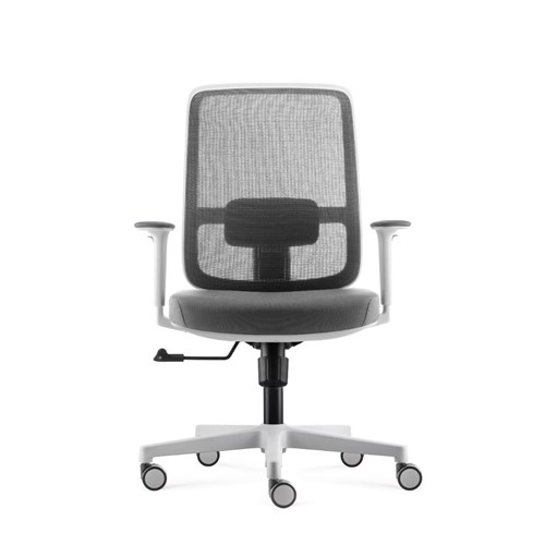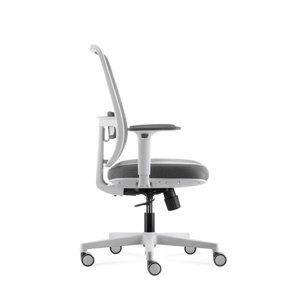 • Lotto medium back operator chair. Medium back. White with grey backed mesh and grey fabric seat. White PP and fiberglass mix frame.