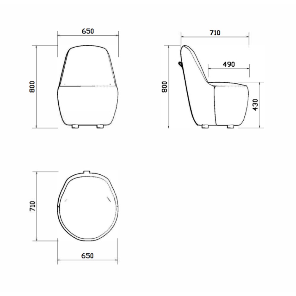 • Dimensions: 650W x 710D x 800mmH.