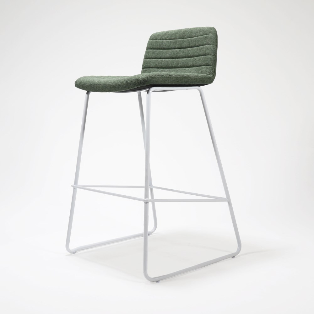 Rapidline Pixel Bar Stool 730mmH White Frame And Olive Fabric