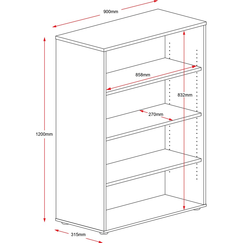 Rapidline Rapid Worker Bookcase 3 Shelves 900W x 315D x 1200mmH White And Ironstone