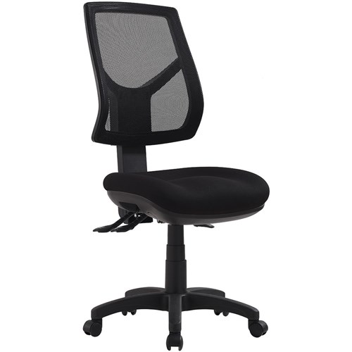 Rio High Back Task Chair 3 Lever No Arms Mesh Back Black Fabric Seat